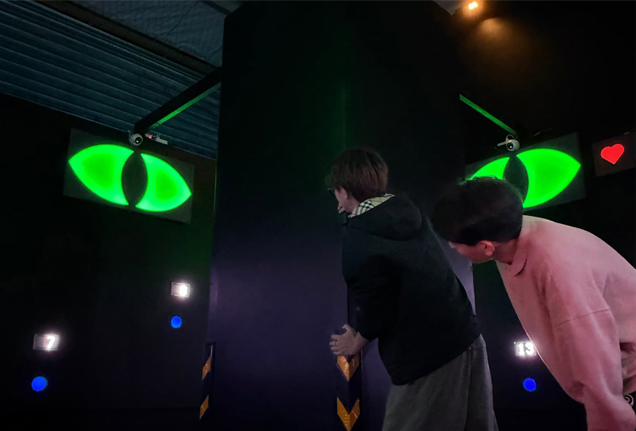 Hit the right buttons fast while sneaking past motion sensors using pillars for cover.